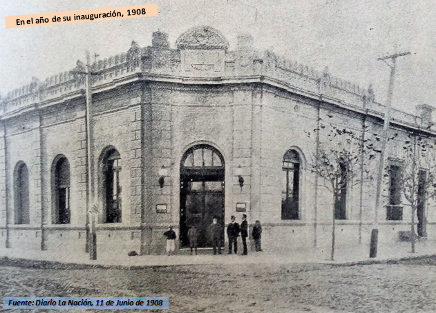 De un lado la fachada original año 1908 del Banco de la Nación Argentina sucursal Zárate, a poco de ser inaugurado (foto Diario La Nación de junio 1908). Del otro lado, lógicamente, como luce actualmente.