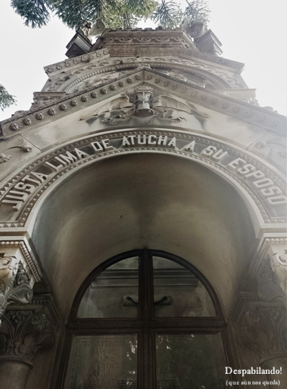 Tras cruzar el pórtico de entrada y seguir unos metros por la calle principal no deja de sorprender los ampulosos mausoleos de destacadas figuras. Propio a esto, esa privilegiada ubicación ha escogido nuestros conocidos personajes para perpetuar su nombre y reposo. Frente a la rotonda central se encuentra la neogótica bóveda que dice: “Justa Lima de Atucha a su Esposo”. Destacada construcción con detalles interesantes: sus notables símbolos de la masonería en la arquitectura. Si bien por ahora no se ha demostrado la participación de los Atucha-Lima en organizaciones masónicas, son evidentes las referencias, siendo motivo de ejemplos del caso por quienes se dedican a estudiar estas relaciones.