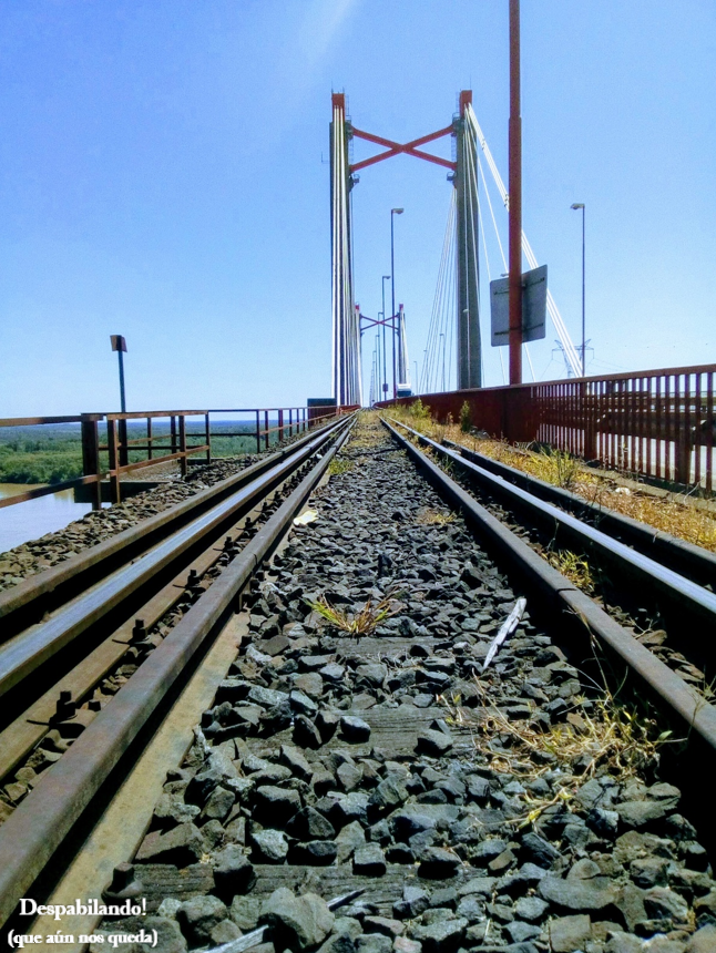 No es tritrocha. Es la que tuvo siempre, la media de 1435mm. Lo demás son cuatro generosos contrarrieles. Necesarios para soportar los esfuerzos laterales de las, cómodamente, más de 1000 toneladas de peso la cual está diseñado tremendo puente ferroviario. Sin embargo es magro el uso que le dan…