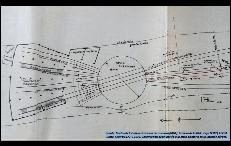 El galpón y la mesa se hicieron con el nuevo y complejo cuadro de estación terminal del FCCBA en Zárate, ahora que empalmaba con Ferrocarriles de Entre Ríos vinculándose el litoral a la red ferroviaria del resto del país.