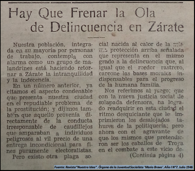 No Es De Ahora: Junio 1946. Clientelismo y caudillismo amparando prostitución ilegal y juego clandestino, a troche y moche en Zárate, denunciaba la juventud socialista local desde su revista quincenal “Nuestra Idea”.