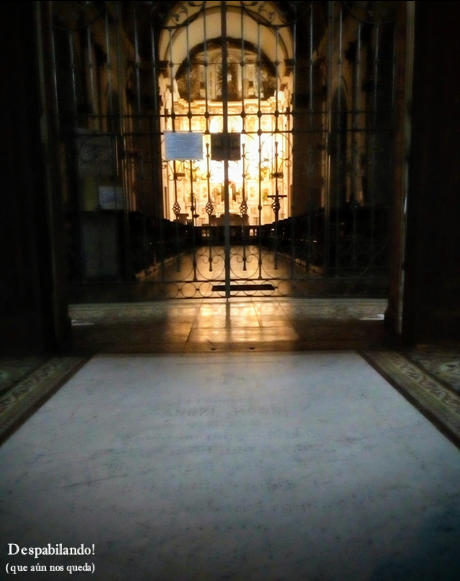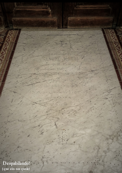 Si anduvo por allí, probablemente usted haya percibido que en el piso del acceso al templo hay un gran mármol, distintivo de la línea de mosaicos que se trae. Pues bien, he allí el caso. Más de cinco generaciones, cientos de miles de personas que en más de un siglo han estado caminando, quizá sin saberlo, sobre una sepultura.