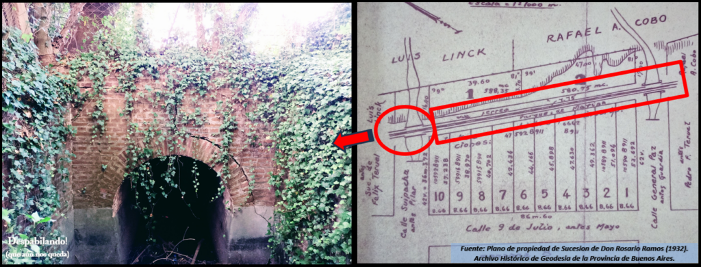 Para ubicarnos hoy, el desvío se origina atrás del ‘colegio Industrial’ y sale por su playón, derecho a correr por Güemes. Al cabo de una docena de cuadras, ingresa el Parque de Artillería de Marina por Güemes y Chacabuco. Curva dentro del terreno alto y a la altura de Valentín Alsina y 9 de Julio, comienza a transitar en suave pendiente el deslinde de la barranca, paralelo a esta última calle. Hay dos desagües naturales a la altura de las calles Suipacha y General Paz, ambos son sorteados con alcantarillados que aún están entre los cañaverales del lugar. Sigue el trazado por el costado de la Facultad de Derecho (Pasaje Tabocchini) y cruza la Rivadavia. Verán que todavía subsiste parte del terraplenado que se formó en la falda baja de la barranca entre Rivadavia y Belgrano, para curva mediante, enfilar directo hacia lo que fue el muelle, cruzando Aristóbulo del Valle esquina Costanera en dirección al río. Este trazado va a empalmar allí con el original del muelle al Parque, quedando completo el tendido.