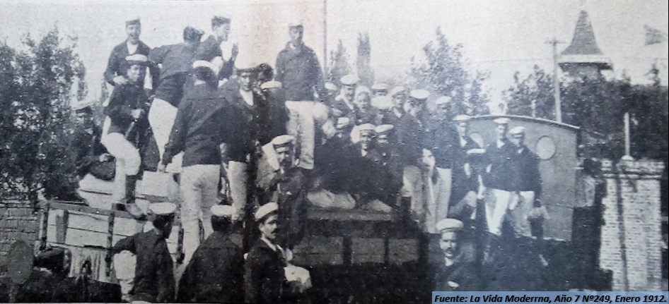 “Finalmente, ha sido construido el año próximo pasado, por cuenta de la Nación y entregado al servicio en Noviembre del mismo año, el ramal que se extiende desde 250 metros de la Estación Zárate, del ferrocarril Buenos Aires y Rosario, al Arsenal del mismo nombre, con una extensión de 2563 metros y un costo de 22900 pesos moneda nacional y 11500 pesos oro. La ejecución de esta obra ha respondido también a las defensas del Puerto Militar, pues como se sabe, los cañones con que se ha artillado una parte de las baterías se hallaban depositados en el Arsenal de Zárate.”