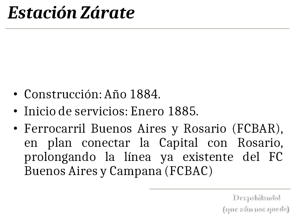 Les dejamos estos “Slides Despabilantes” con Estación Zárate, para contar algunos datos de la más antigua de las estaciones del Partido.