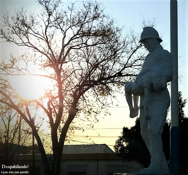 Aquí la estatua fue inaugurada en 1963, en el marco del 50 aniversario de la fundación de nuestra asociación de bomberos voluntarios. Luego de más de cuatro décadas en su emplazamiento original se lo trasladó a la avenida Mitre, y de allí hace unos años a la nombrada Plazoleta Bomberos Voluntarios, ubicada a metros de avenida Lavalle y Alférez Pacheco.