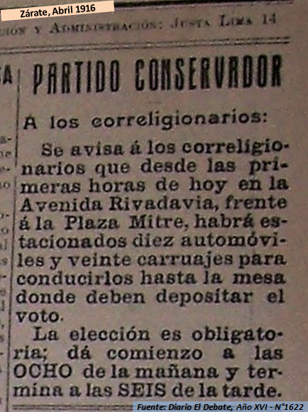 Año 1916. Aviso en el periódico de que te ponen transporte para llevarte a votar.