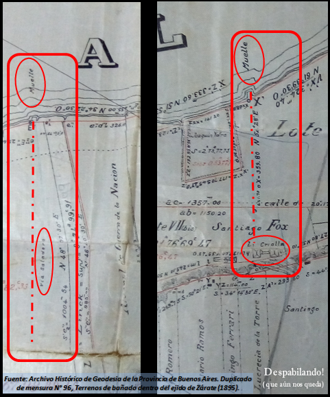 Ambos establecimientos supieron tener sus respectivos muelles, fundamentales para recibir insumos claves como la sal o despachar sus productos. La vinculación terrestre entre el proceso productivo y el muelle se daba por medio de vías. Rieles primitivos, de sistemas llamados “económicos”, donde desplazaban las cargas por medio de vagonetas y zorras. De esto se puede dar cuenta documental ya en la década de 1870, cuando se remataron pertenencias de uno de ellos y en el inventario aparece: “1 Vía férrea con 530 metros del Saladero hasta el muelle situado en la margen del Paraná” y también “4 zorras de embarque”.