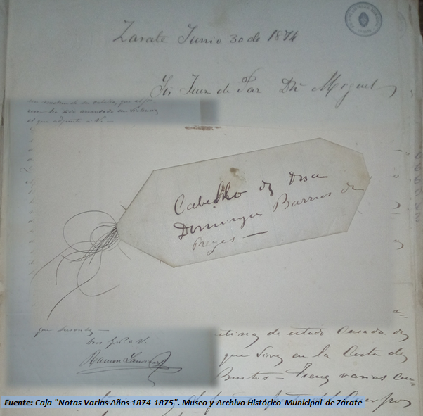 Hoy, en una caja de notas antiguas del Museo y Archivo Histórico Municipal de Zárate, aún están esas pruebas de “Cabello y Uña de Dominga Barrios de Reyes”, en un improvisado papelillo doblado adjunto al informe.