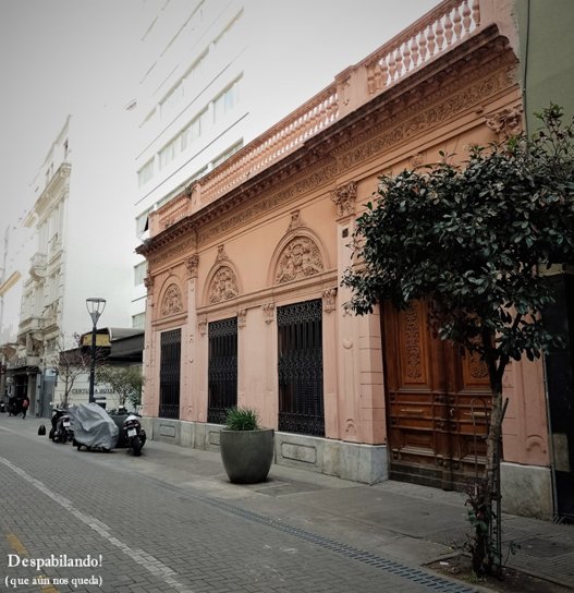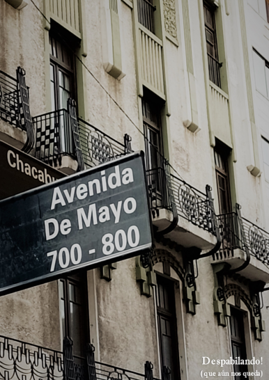 Una cuadra más en dirección a Avenida 9 de Julio, pasamos por enfrente del famoso Café Tortoni, doblamos por Tacuarí y alcanzamos su esquina con Rivadavia. Tacuarí cambia de nombre, porque la Rivadavia porteña también divide los nombres como la zarateña. Así da inicio a Suipacha. Y a media cuadra la encontramos: Suipacha 50, la histórica casona de Justa Lima de Atucha.
