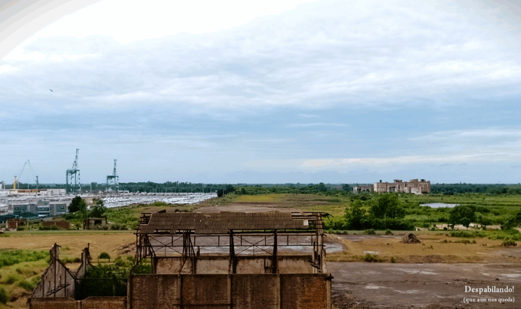 Emprendimientos industriales que atravesaron el siglo XIX y XX. Como la industria frigorífica, apreciable allá atrás a la derecha: el frigorífico Hall. Reconvertido a mediados del siglo XX en otro icónico establecimiento: Textil Reysol, hasta las décadas finales del siglo en que volvieron esas construcciones a ser puerto (Multipuerto), mientras veían crecer a su lado Terminal Zárate, y otra vez el ciclo: el ser un puerto, en este siglo XXI. Puerto de Zárate, puerto de llegada, de salida.